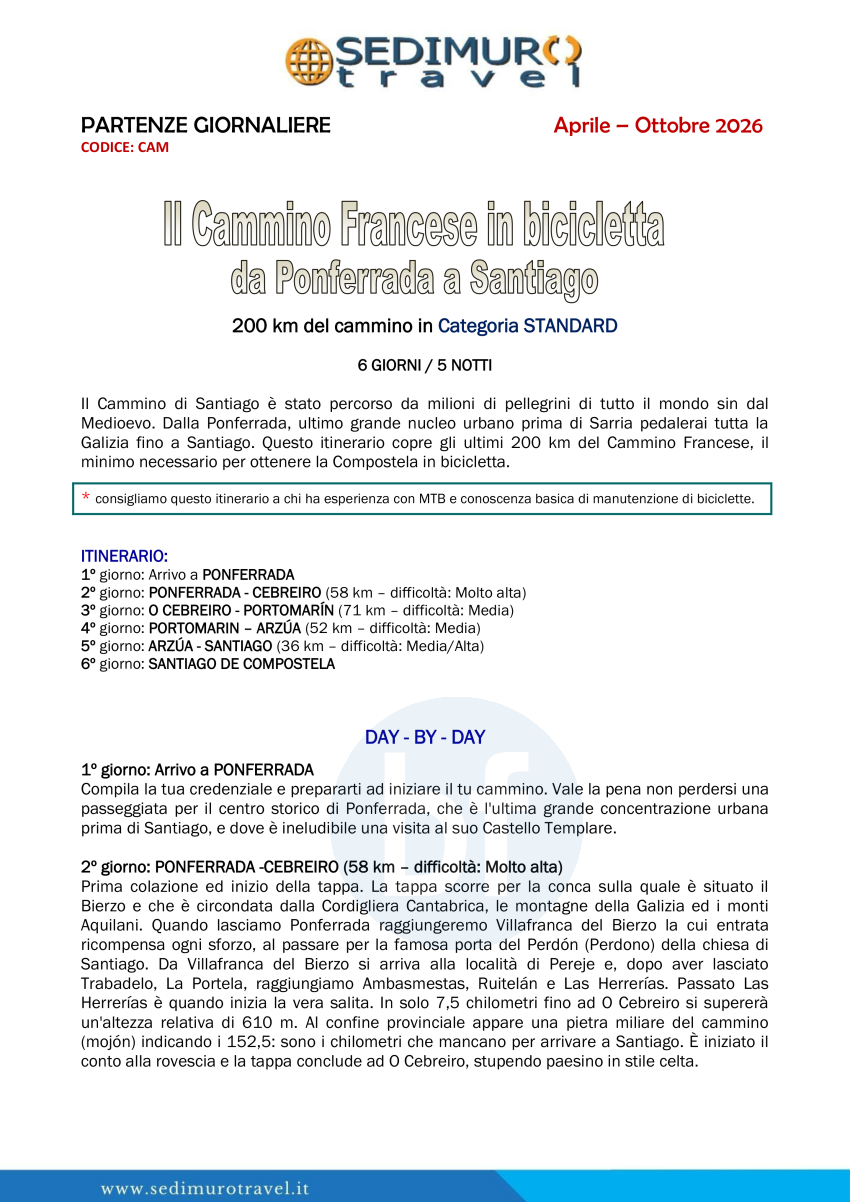 Il Cammino Francese in bicicletta da Ponferrada a Santiago 6 giorni